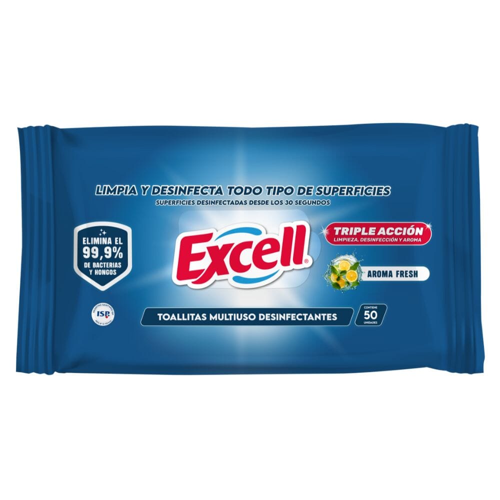 Descubre la comodidad y eficacia de las toallitas desinfectantes de Excell. Presentadas en un práctico sachet de 50 hojas, son ideales para llevar contigo a cualquier lugar, asegurando que puedas limpiar y desinfectar superficies de manera rápida y efectiva en cualquier momento.