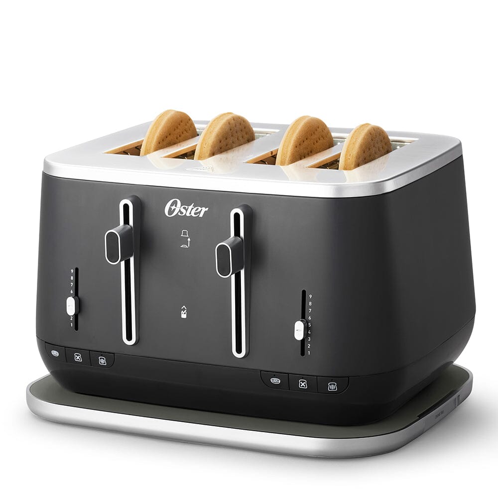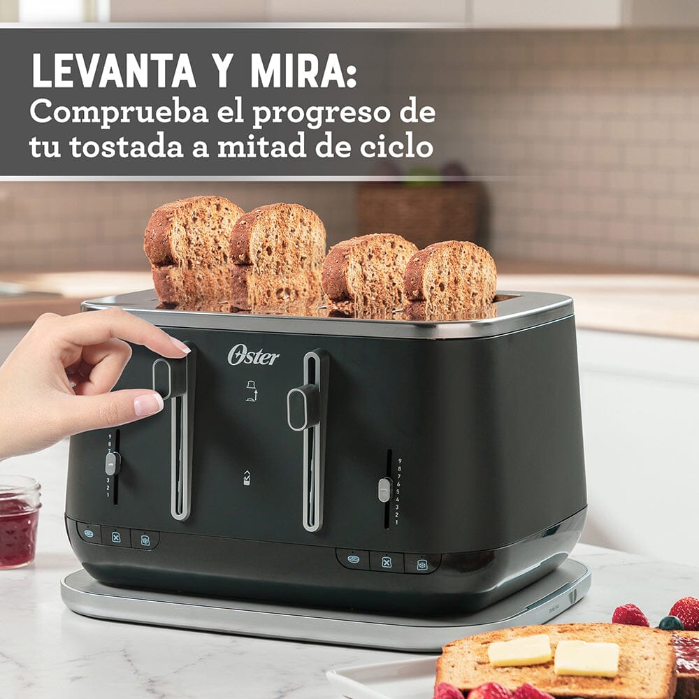 "Agregarle personalidad a tu cocina con la nueva tostadora premium de 4 rebanadas Oster® que combina un diseño tradicional con toques modernos. Además, tiene una iluminación elegante y un rendimiento de tostado óptimo. Sus ranuras anchas brindan espacio para bagels y pan artesanal grueso. Cuenta con 9 niveles de tostado, además de descongelar, prepara bagel y función de cancelar.