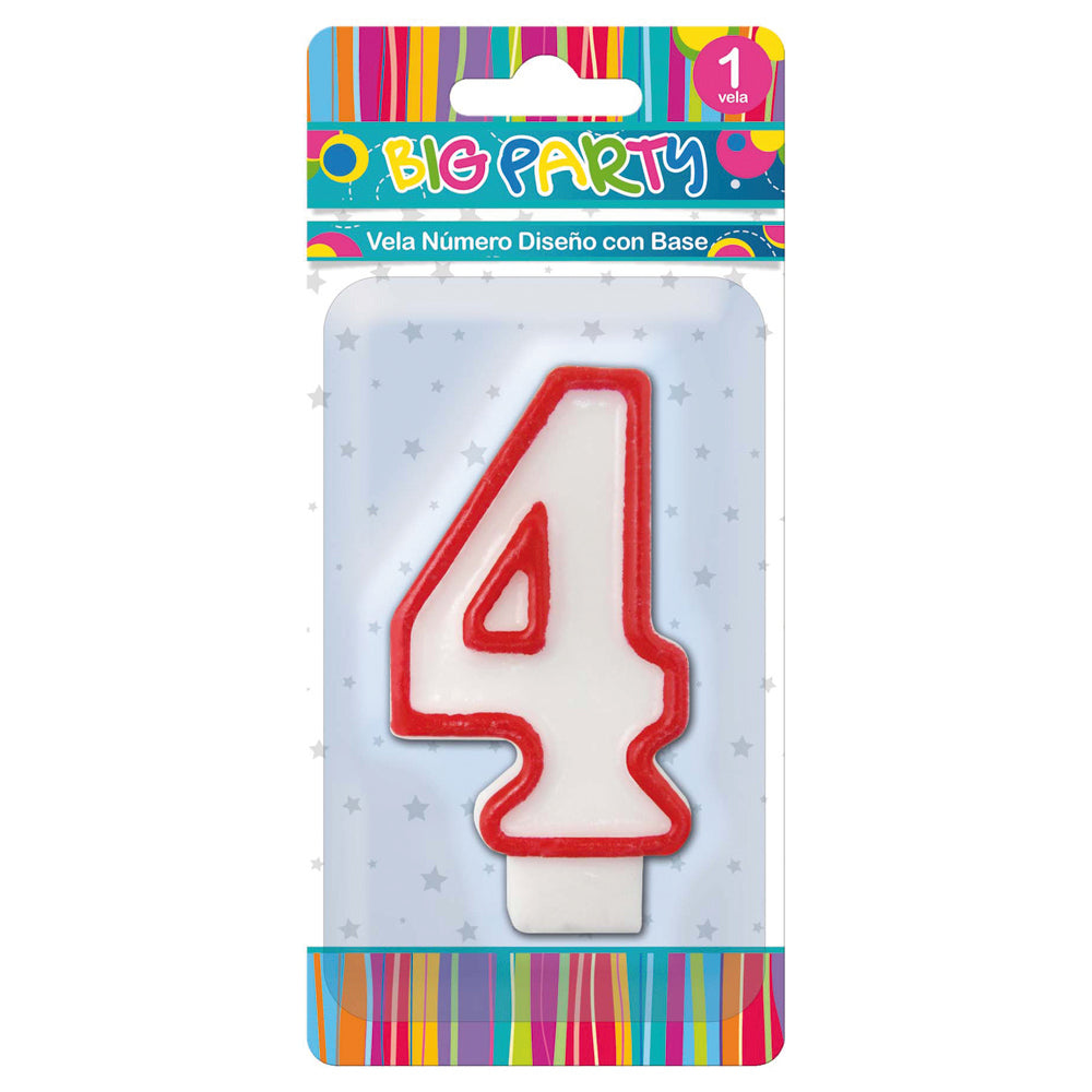 Con la vela cumpleaños número 4 de Big Party, tendrás el mejor indicador de cuántos años se cumplen en tu torta, de un bello diseño y color ¡Además, te servirá para utilizarlo con otros números!