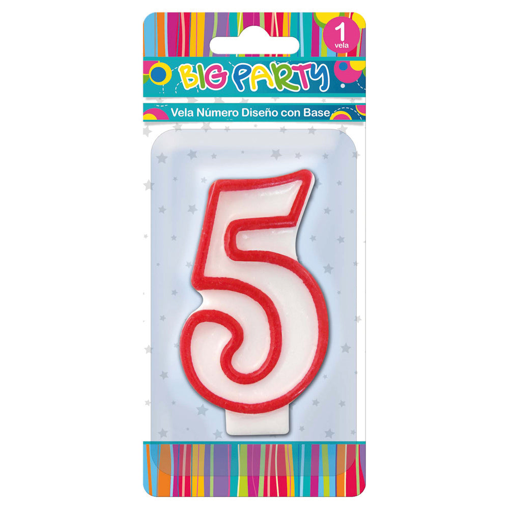 ¿Necesitas una vela de número 5? No te preocupes, tenemos disponible para ti la vela cumpleaños número 5 de Big Party. Con un bello diseño y color ¡Además, la puedes combinar con otros números para más edades!