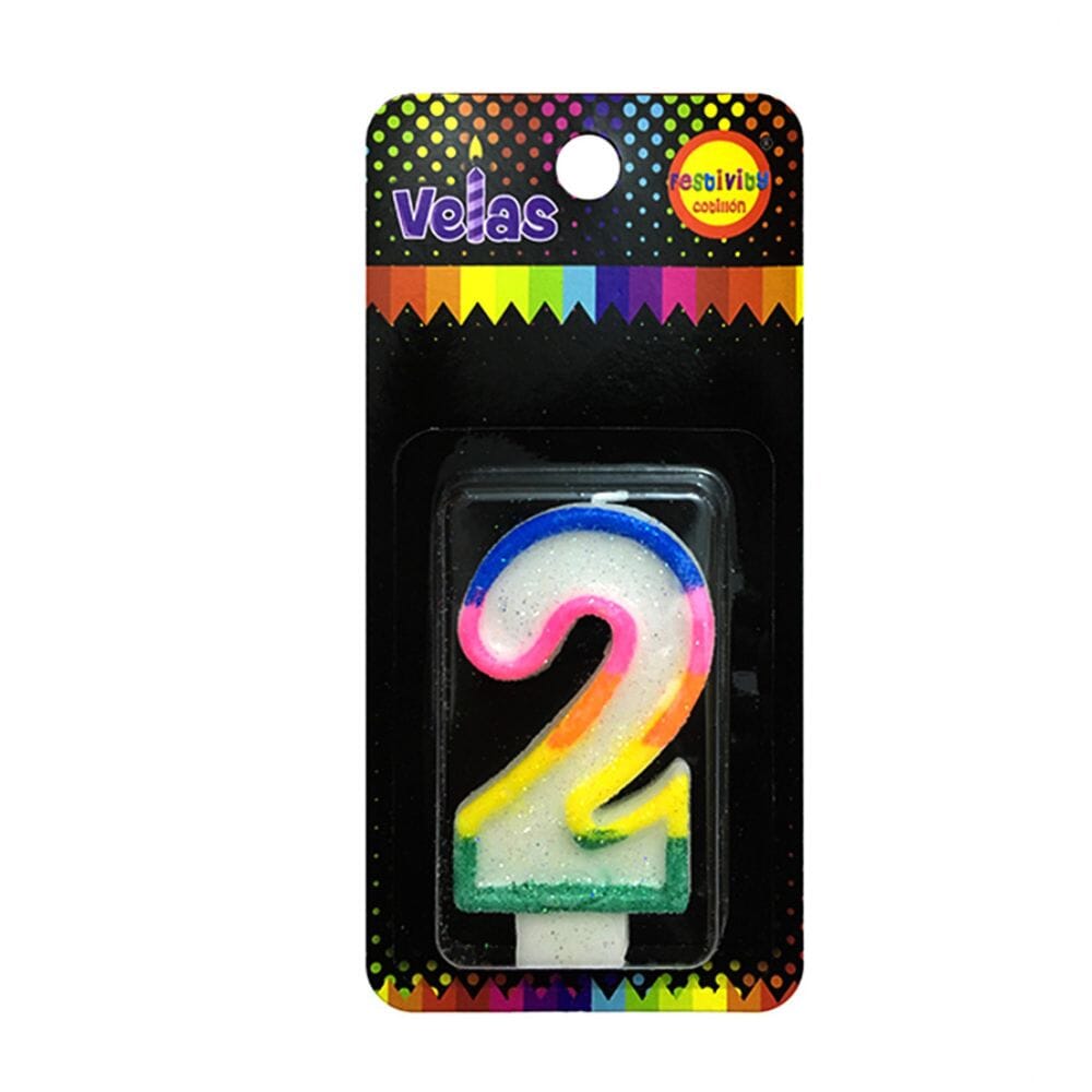 Añade un toque de brillo y elegancia a tus celebraciones con la Vela Numeral Glitter N° 2 de Feco.